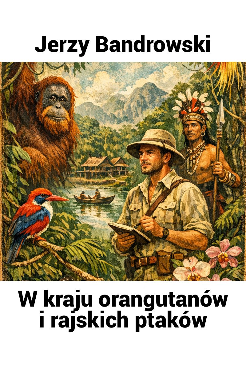 „W kraju orangutanów i rajskich ptaków” Jerzego Bandrowskiego to podróżnicza opowieść z wyprawy do egzotycznych rejonów Borneo. Autor opisuje życie w dżungli oraz spotkania z dziką przyrodą, w tym z orangutanami i barwnymi ptakami. Relacja skupia się także na ludziach zamieszkujących odwiedzane tereny i ich codzienności. Bandrowski przedstawia własne doświadczenia z drogi, obserwując świat z perspektywy uczestnika wyprawy. Książka łączy opis natury z refleksją nad relacją człowieka z otaczającym go środowiskiem.