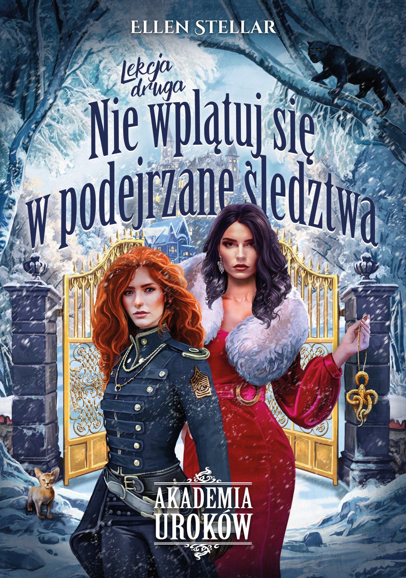 Bohaterowie Akademii Uroków powracają z przytupem, by bawić Cię swoimi przygodami i wciągnąć w kolejne tajemnicze zagadki kryminalne. Jaką zagadkę będą mieli do rozwiązania tym razem nasi dzielni detektywi – Deya i Jurao? Po zaskakujących (szczególnie dla głównej zainteresowanej) oświadczynach siostrzeńca Imperatora, magistra czarnej magii, Pierwszego Miecza Imperium, członka Orderu Nieśmiertelnych i dyrektora Akademii Uroków, Deya robi wszystko, co w jej mocy, by odsunąć w czasie rychłe zamążpójście. Lord Tier ma jednak inne plany… A jak wiemy, cierpliwość nie jest jego najmocniejszą stroną. Na domiar złego do zasypanego śniegiem Ardamu przybywa z misją mateczka, wyniosła i dumna Lady Tier, pieszczotliwie nazwana przez Deyę Lady Monstrum. Czy despotyczna arystokratka zdoła pogodzić się z faktem, że jej jedyny syn uwielbia zwykłą adeptkę Akademii Uroków, w której żyłach nie płynie nawet kropla magicznej krwi, a wszystkie rodowe artefakty uznały ją za „swoją”?
