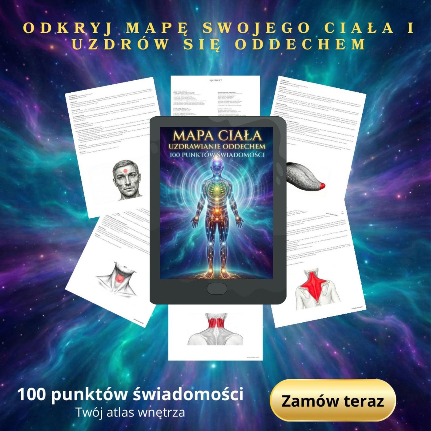 Mapa Ciała: 100 Punktów Świadomości. Twój osobisty przewodnik po sygnałach organizmu. Czy wiesz, że Twoje ciało nieustannie do Ciebie mówi? Ebook „Mapa Ciała” od „Świetlistego Wsparcia” to najbardziej obszerny przewodnik w naszej serii, który łączy starożytną mądrość z nowoczesnym podejściem do dobrostanu. Poznaj 100 kluczowych punktów na mapie swojego ciała, których świadomość pozwoli Ci lepiej zarządzać bólem, stresem i energią życiową. Co zyskasz dzięki tej publikacji? Pełny obraz: Dowiesz się, jak punkty na stopach, dłoniach, twarzy i tułowiu łączą się z Twoim samopoczuciem i organami wewnętrznymi. Samodzielna diagnostyka: Nauczysz się rozpoznawać blokady w ciele, zanim przerodzą się w większy dyskomfort. Praktyczne techniki: 100 konkretnych punktów z instrukcją, jak z nimi pracować poprzez dotyk, oddech i uważność. To nie tylko poradnik – to narzędzie do budowania głębokiej relacji z własnym zdrowiem na każdym etapie życia.
