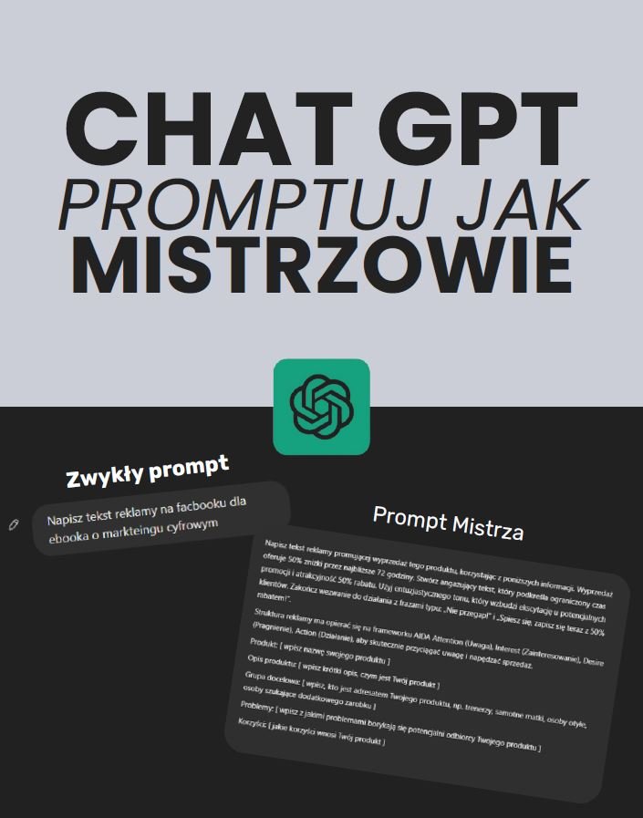 Odkryj tajemnice tworzenia idealnych promptów z ebookiem "AI Promptuj jak Mistrzowie"! Ten przewodnik to niezbędne narzędzie dla każdego, kto chce maksymalnie wykorzystać możliwości sztucznej inteligencji AI. Nauczysz się, jak formułować pytania i polecenia, które przyniosą najdokładniejsze i najbardziej kreatywne odpowiedzi. Dzięki praktycznym wskazówkom, przykładom oraz sekcjom krok po kroku, szybko zamienisz się w mistrza komunikacji z AI. Nie czekaj, sięgnij po wiedzę, która pomoże Ci osiągnąć nieograniczone możliwości w pracy i życiu codziennym!