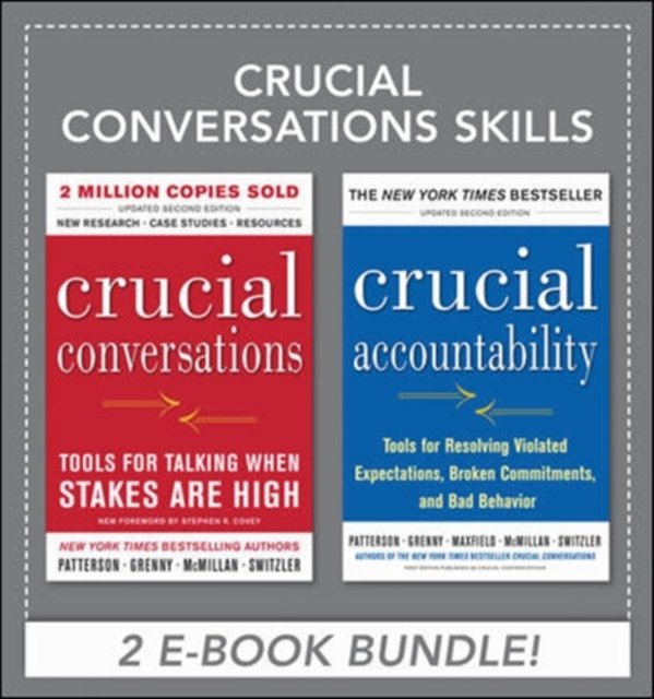 How Do You Communicate When the Stakes Are High?Learn how with these TWO GROUNDBREAKING BOOKS in ONE eBOOK PACKAGE!In any organization, the best laid plans boil down to one simple thing: how well we come together to bring them to fruition. But more often than not, we end up dealing with people who come across as disagreeable, stubborn, or even obstructive. And emotions flare up. The only way to get things done is to step up to the plate . . . by stepping back from our emotions.Written by a team of experts from the world-renowned training firm VitalSmarts, these two books provide the skills you need to make every interaction fruitful and productive in even the most emotional situations.eBook package includes:CRUCIAL CONVERSATIONSThe New York Times bestselling Crucial Conversations has sparked a revolution in how people communicate to achieve common goals. Now, the revised second edition builds on this decade-long legacy of success to get professionals at every level and in all professions talking with partners, bosses, employees, clients not at them.Learn proven methods for turning the focus of hot-button discussions job performance, customer satisfaction, interpersonal matters away from subjective points of view and toward productive, mutually beneficial conclusions. [Crucial Conversations] draws our attention to those defining moments that literally shape our lives, our relationships, and our world. . . . This book deserves to take its place as one of the key thought leadership contributions of our time. from the Foreword by Stephen R. Covey, author of The 7 Habits of Highly Effective People The quality of your life comes out of the quality of your dialogues and conversations. Here s how to instantly uplift your crucial conversations. Mark Victor Hansen, co-creator of the #1 New York Times bestselling series Chicken Soup for the Soul CRUCIAL ACCOUNTABILITYHold anyone accountable. Master performance discussions. Get RESULTS.Broken promises, missed deadlines, poor behavior--they don't just make others' lives miserable; they can sap up to 50 percent of organizational performance and account for the vast majority of divorces. Crucial Accountability offers the tools for improving relationships in the workplace and in life and for resolving all these problems--permanently.PRAISE FOR CRUCIAL ACCOUNTABILITY: "Revolutionary ideas ... opportunities for breakthrough ..." -- Stephen R. Covey, author of The 7 Habits of Highly Effective People"Unleash the true potential of a relationship or organization and move it to the next level." -- Ken Blanchard, coauthor of The One Minute Manager"The most recommended and most effective resource in my library." -- Stacey Allerton Firth, Vice President, Human Resources, Ford of Canada"Brilliant strategies for those difficult discussions at home and in the workplace." -- Soledad O Brien, CNN news anchor and producer"This book is the real deal.... Read it, underline it, learn from it. It's a gem." -- Mike Murray, VP Human Resources and Administration (retired), Microsoft