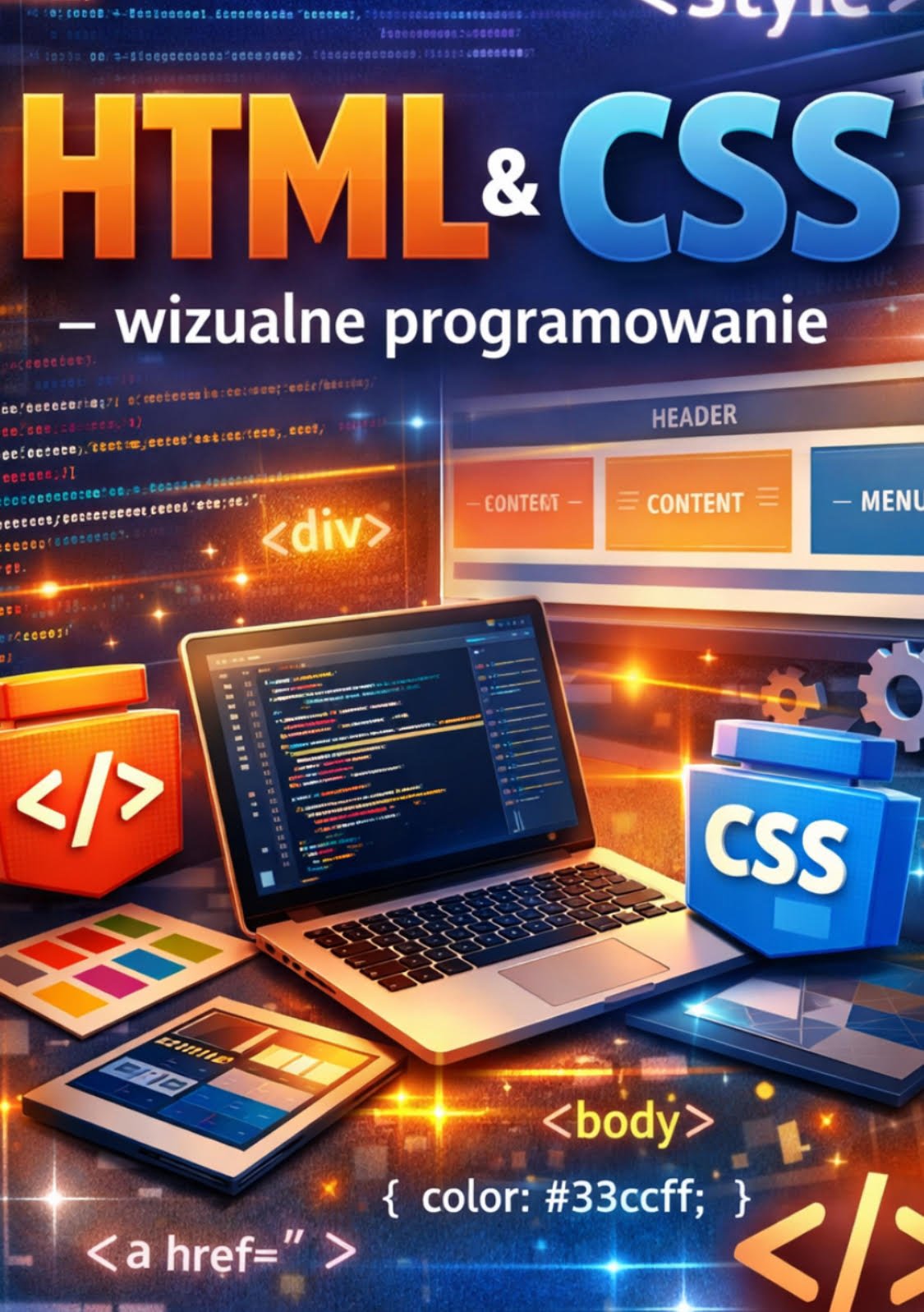 W świecie tworzenia stron internetowych HTML i CSS to fundamenty, na których opiera się każda wizualna warstwa aplikacji. HTML definiuje strukturę treści, a CSS nadaje jej styl – kolory, układ, animacje, responsywność. Dziś projektowanie interfejsów to nie tylko „pisanie kodu”, ale prawdziwe programowanie wizualne: tworzymy estetyczne, interaktywne i dostosowane do każdego urządzenia środowisko. W tym e‑booku nauczysz się, jak świadomie budować warstwę wizualną, wykorzystując nowoczesne techniki CSS, takie jak Flexbox, Grid, animacje i media queries. Nie potrzebujesz wcześniejszego doświadczenia – zaczniemy od podstaw, a skończymy na praktycznym projekcie strony portfolio.