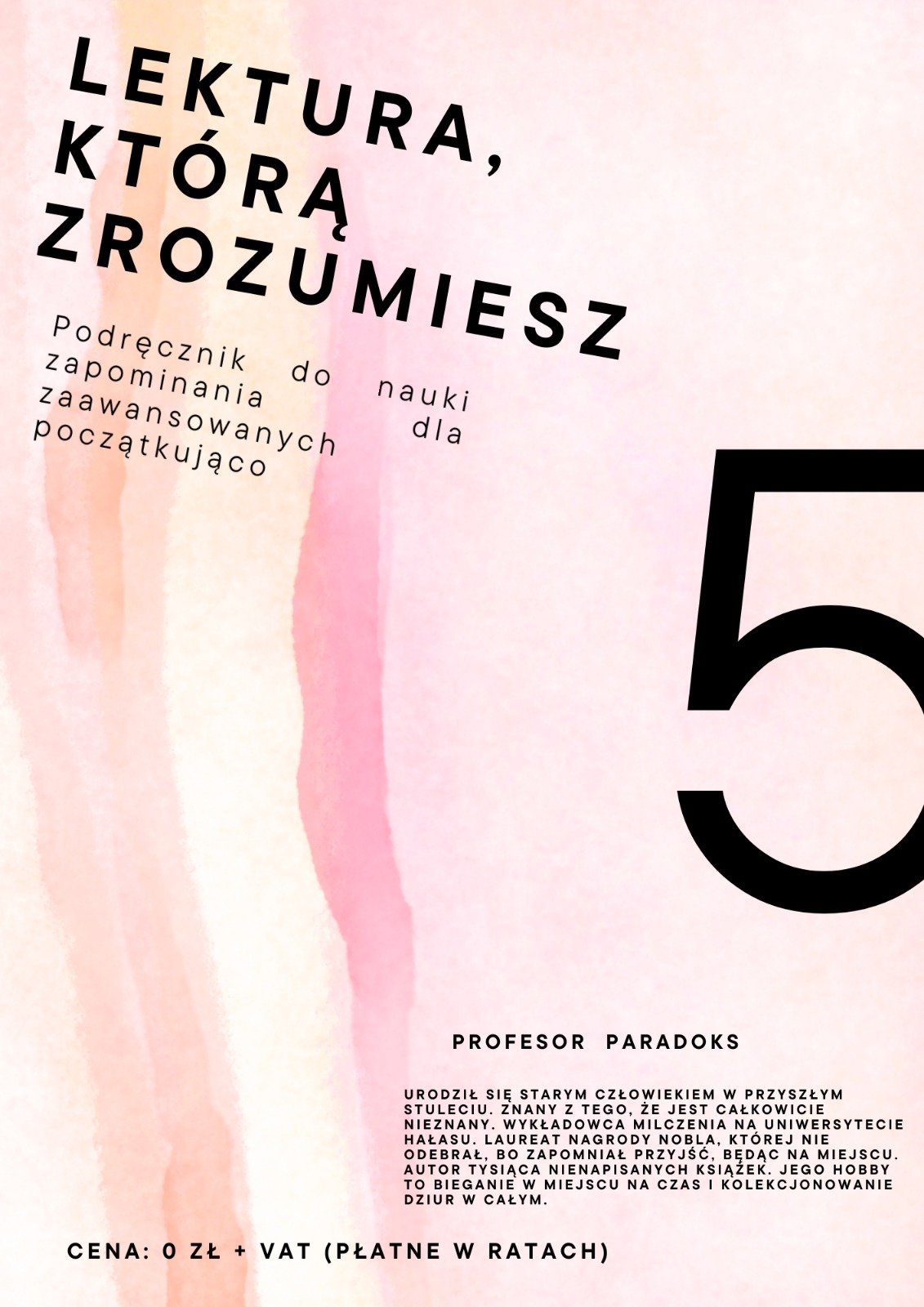 Masz dość szkolnej logiki, w której 2+2 równa się ....., a bieg w kółko na WF-ie przygotowuje do dorosłości? Ta książka jest dla Ciebie. Oto jedyny podręcznik napisany przez studenta, któremu tak bardzo nie chciało się uczyć do sesji, że postanowił obnażyć prawdę o systemie edukacji. Dowiedz się, dlaczego szkoła to precyzyjnie zaplanowana operacja lobotomii , a lektury dobierane są przez tajną Komisję do Spraw Utrudniania Życia Młodzieży. W środku znajdziesz odpowiedzi na pytania, których bałeś się zadać: Dlaczego „Harry Potter" jest zakazany? Czemu Wokulski woli stać pod balkonem i marznąć, zamiast cieszyć się milionami?. Jak interpretować „Chłopów"? Dlaczego na matematyce humanistycznej parabola musi tańczyć do muzyki Chopina?. O co naprawdę chodzi w „Stowarzyszeniu Umarłych Poetów" To przewodnik po świecie, w którym kąt prosty to faszyzm geometrii , a matura to próg 30%, co oznacza, że pacjent ma 30% szans na przeżycie.