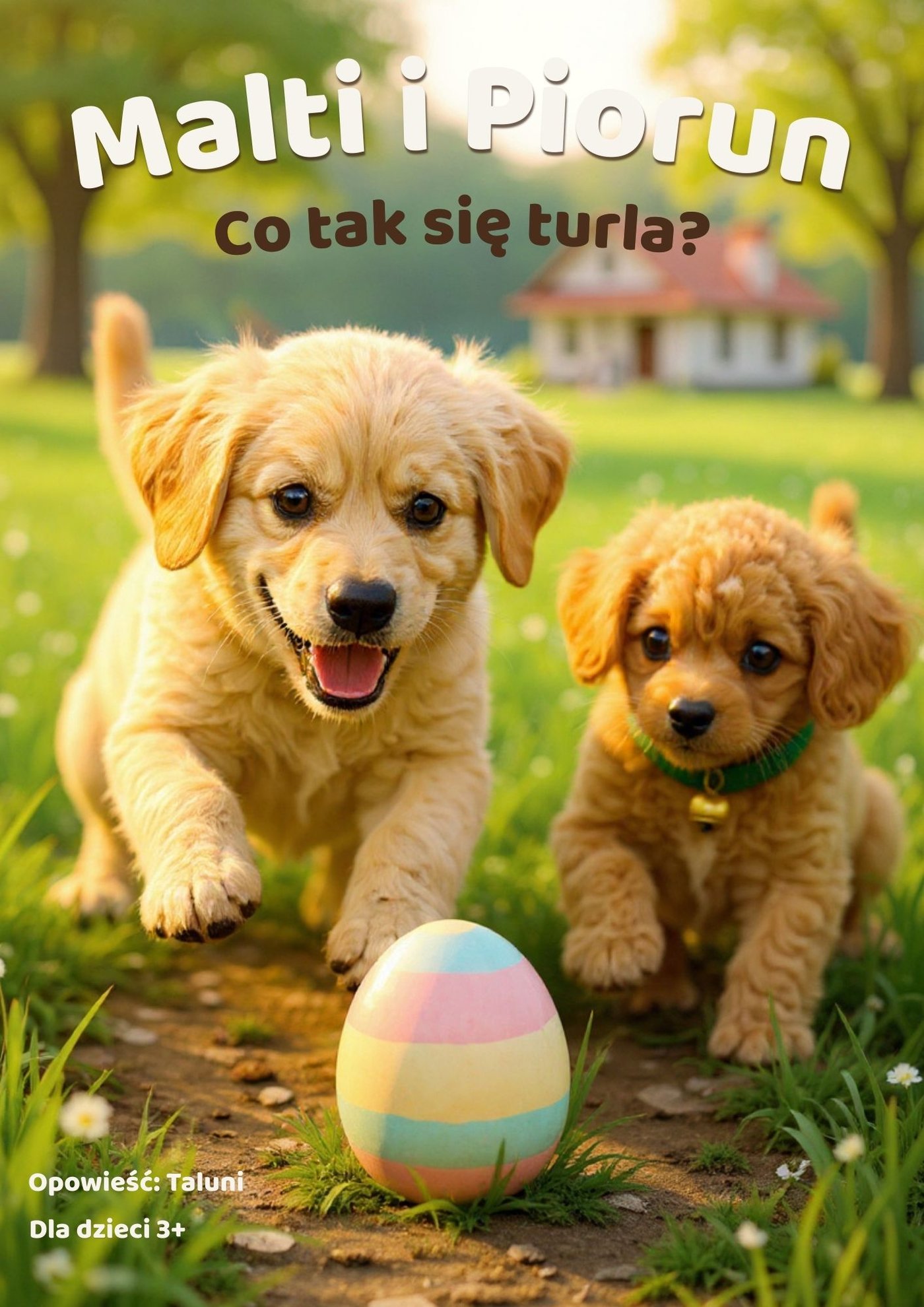 Malti i Piorun. Co tak sie turla? to ciepla i zabawna bajka dla dzieci w wieku 3-5 lat. W spokojnym ogrodzie pojawia sie tajemnicze jajko. Czy to pilka? A moze cos zupelnie innego? Jedno male TUR TUP TURLU wystarczy, by wywolac wielkie zamieszanie. To krotka, rytmiczna opowiesc idealna do wspolnego czytania przed snem. Duza ilosc dialogow, dynamiczne sceny i spokojne zakonczenie sprawiaja, ze historia bawi i jednoczesnie wycisza. Seria Malti i Piorun inspirowana jest przygodami prawdziwych pieskow - ich imionami, charakterami i codziennymi sytuacjami zamienionymi w cieple, bezpieczne historie dla najmlodszych. Ebook dla dzieci 3+ z pelnostronicowymi ilustracjami.