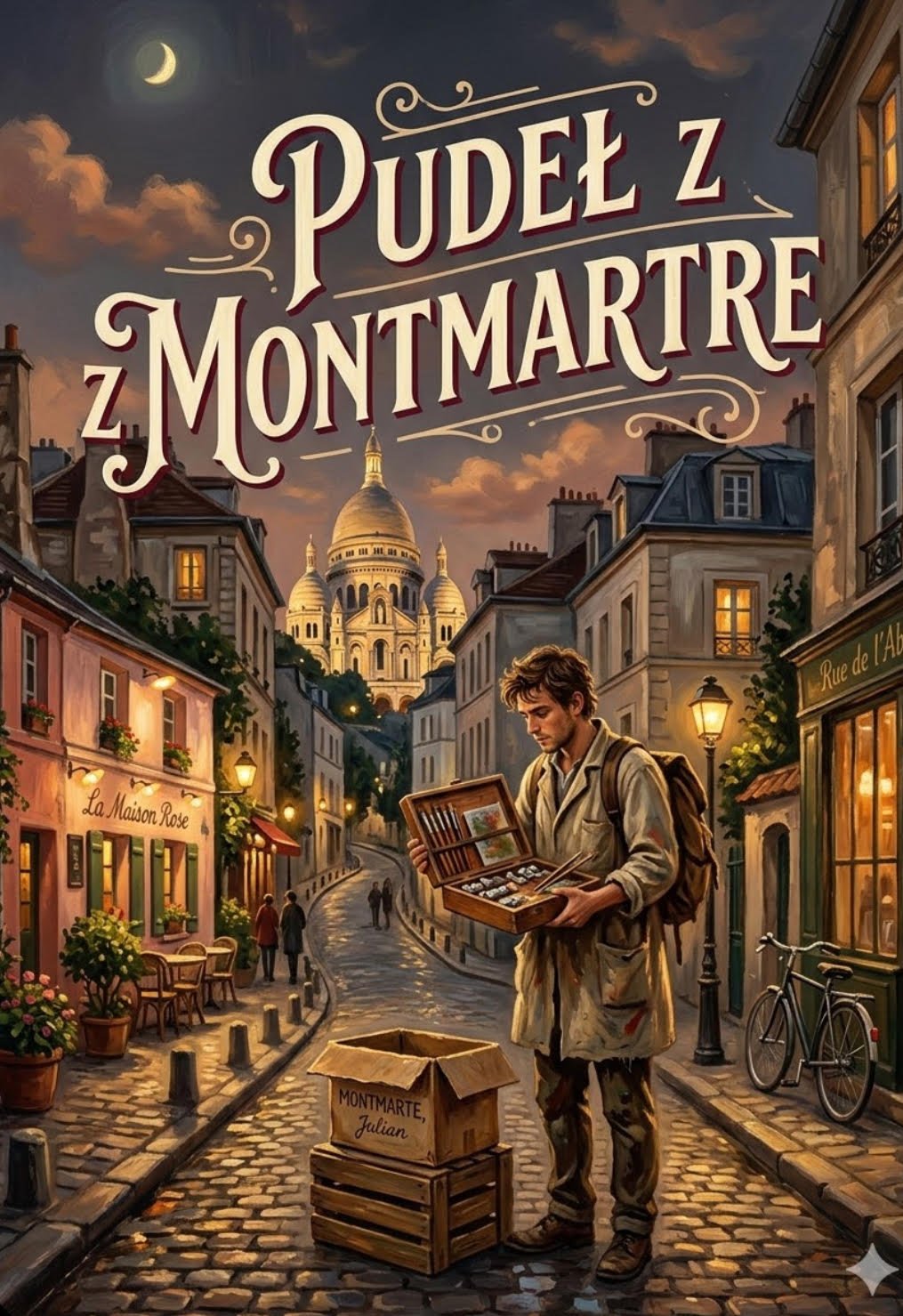 Montmartre o poranku pachniał chlebem z pobliskiej piekarni, wilgotnym brukiem i czymś jeszcze – czymś, czego nie da się nazwać, ale co czuć w powietrzu od zawsze. Może to dusza tego miejsca. Może wspomnienia wszystkich, którzy tu mieszkali, malowali, pili, kochali się i umierali. Siedziałem na schodkach przed małą kawiarnią, popijając kawę z miseczki – tak piją kawę prawdziwi paryżanie, nie w filiżankach – i patrzyłem na miasto. Byłem tu od trzech dni. Przyjechałem z prowincji, z małego miasteczka, gdzie wszyscy wszystkich znają, a każdy dzień jest taki sam jak poprzedni. Miałem dwadzieścia lat, w kieszeni kilka franków, w sercu głód wielkiego świata, a w głowie obraz, który chciałem namalować. Tylko jeden. Reszta miała się wydarzyć sama. Nazywam się Julien. I nie wiedziałem jeszcze, że ten poranek zmieni wszystko.
