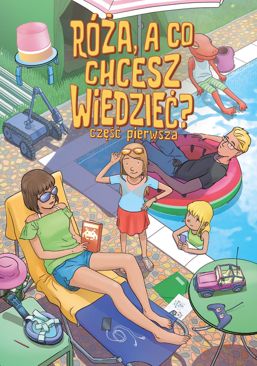 „Róża, a co chcesz wiedzieć? Część 1” to edukacyjny komiks dla dzieci, który w przystępny i zabawny sposób wprowadza w świat technologii, Internetu i współczesnych wyzwań cyfrowych. Razem z Różą i jej siostrą Maliną czytelnicy poznają podstawy programowania, uczą się bezpiecznego korzystania z sieci, odkrywają czym są media społecznościowe, roboty, gry komputerowe i sztuczna inteligencja. Książka łączy opowieść z praktycznymi zadaniami – każdemu rozdziałowi towarzyszą proste gry i ćwiczenia w Scratchu, które rozwijają logiczne myślenie i kreatywność. To lektura zarówno dla dzieci, jak i rodziców, pomagająca wspólnie zrozumieć technologię zamiast się jej bać.