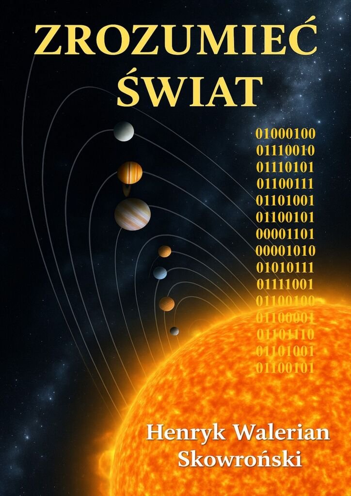 Chcę też na początku mojej książki wytłumaczyć się z okładki. Otóż nie odzwierciedla ona rzeczywistości w kilku aspektach. Po pierwsze z po za atmosfery Słońce dla ludzkiego oka jest śnieżno białe. Po drugie odległości między planetami są dużo mniejsze niż te realne. Po trzecie planety z perspektywy z po za Układu Słonecznego miały by dużo mniejszy rozmiar a największą była by ta najbliżej ludzkiego oka czyli Neptun ( zasada perspektywy ). Po czwarte orbity planet nie występują idealnie w jednej płaszczyźnie. Jest też po piąte po szóste ale chodzi o atrakcyjność i praktyczność okładki. Dlatego tę grafikę uznałem za w miarę odpowiednią na okładkę mojej książki. Autentyczne wielkości Słońca w stosunku do planet przedstawię w dalszej części książki.
